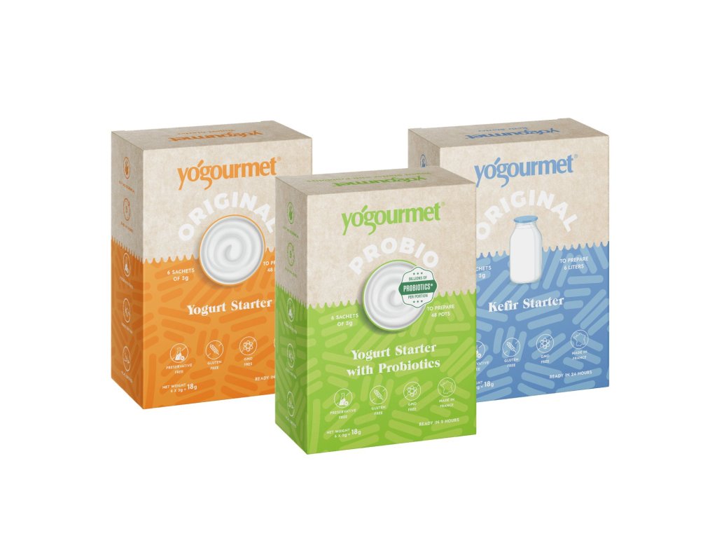 Neviete, čo vyskúšať skôr? Domáca klasika, probiotická bomba či kefír? Alebo jednoducho milujete všetky 3? Toto zvýhodnené balenie obsahuje všetky variácie štartovacích kultúr Yogourmet®.