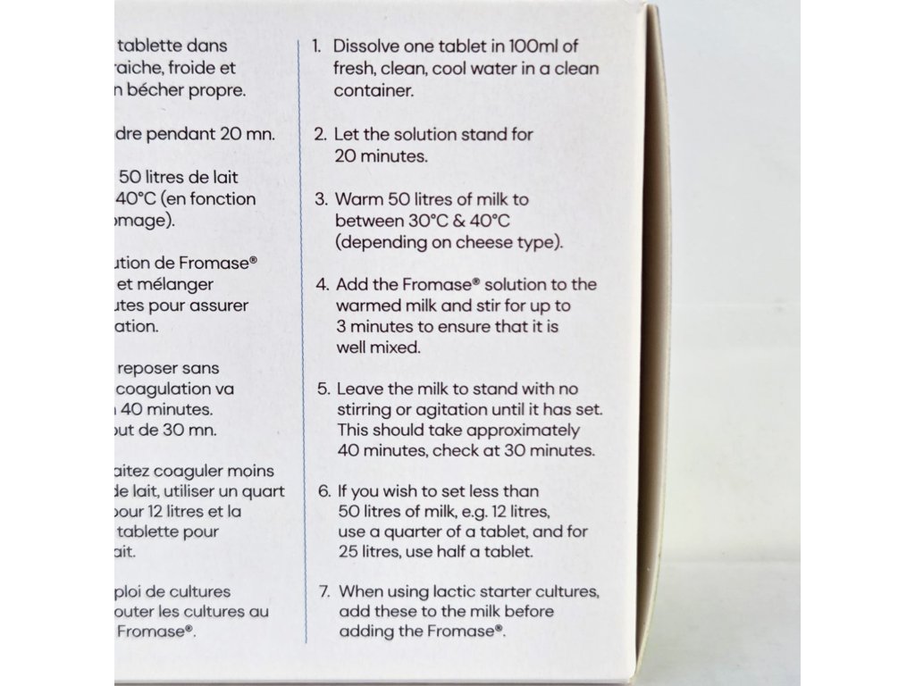 Fromase® 50 Tablet je mikrobiálny koagulant odvodený z kmeňa Rhizomucor miehei.