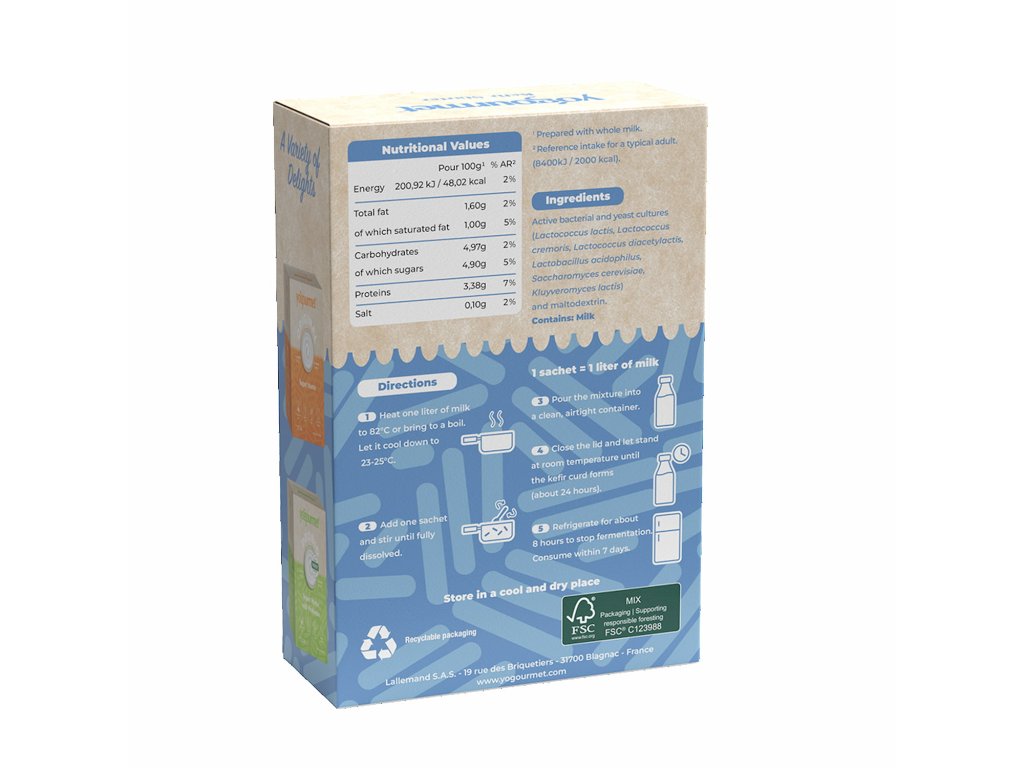 Lyofilizované kultúry značky Yogourmet® sú zlatý štandard v domácej fermentácii. Vďaka nim si pripravíte poctivý kefír prospešný pre trávenie a črevnú mikroflóru, ktorý je zároveň jemný a krémový a pochutia si na ňom aj ľudia čo kefír ešte neskúšali.